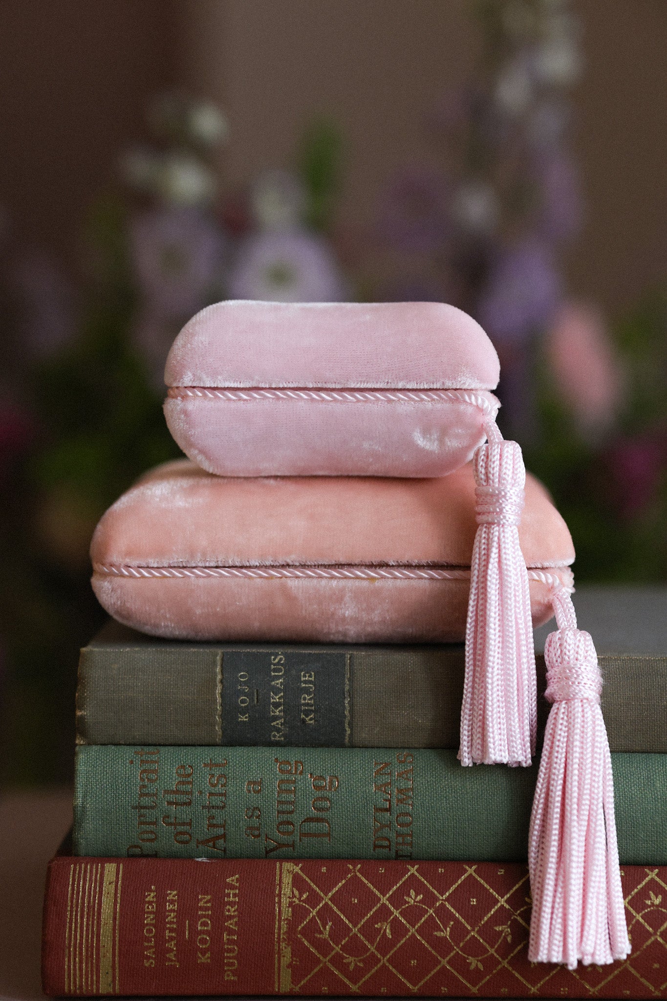 Pienempi rasia on sormuksille, täydellinen turvasatama tärkeälle korulle. Suurempi toimii monikäyttöisenä säilytysrasiana ja se on myös helppo ottaa mukaan matkalle. Pehmeys, käytännöllisyys ja ripaus kauneutta tekevät näistä rasioista luontevan osan korujen tarinaa.