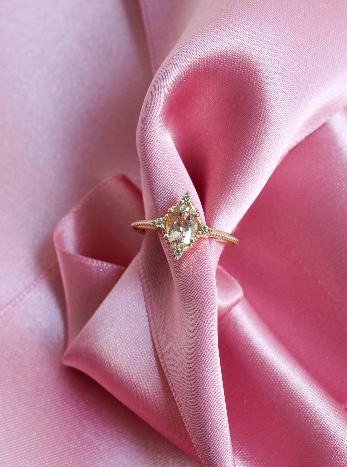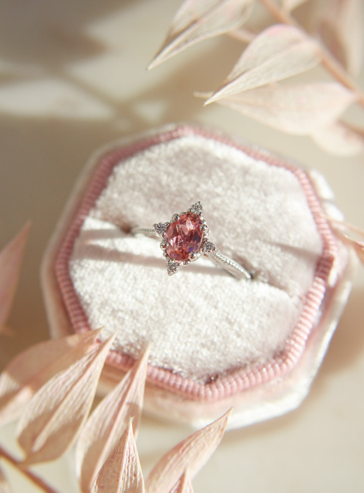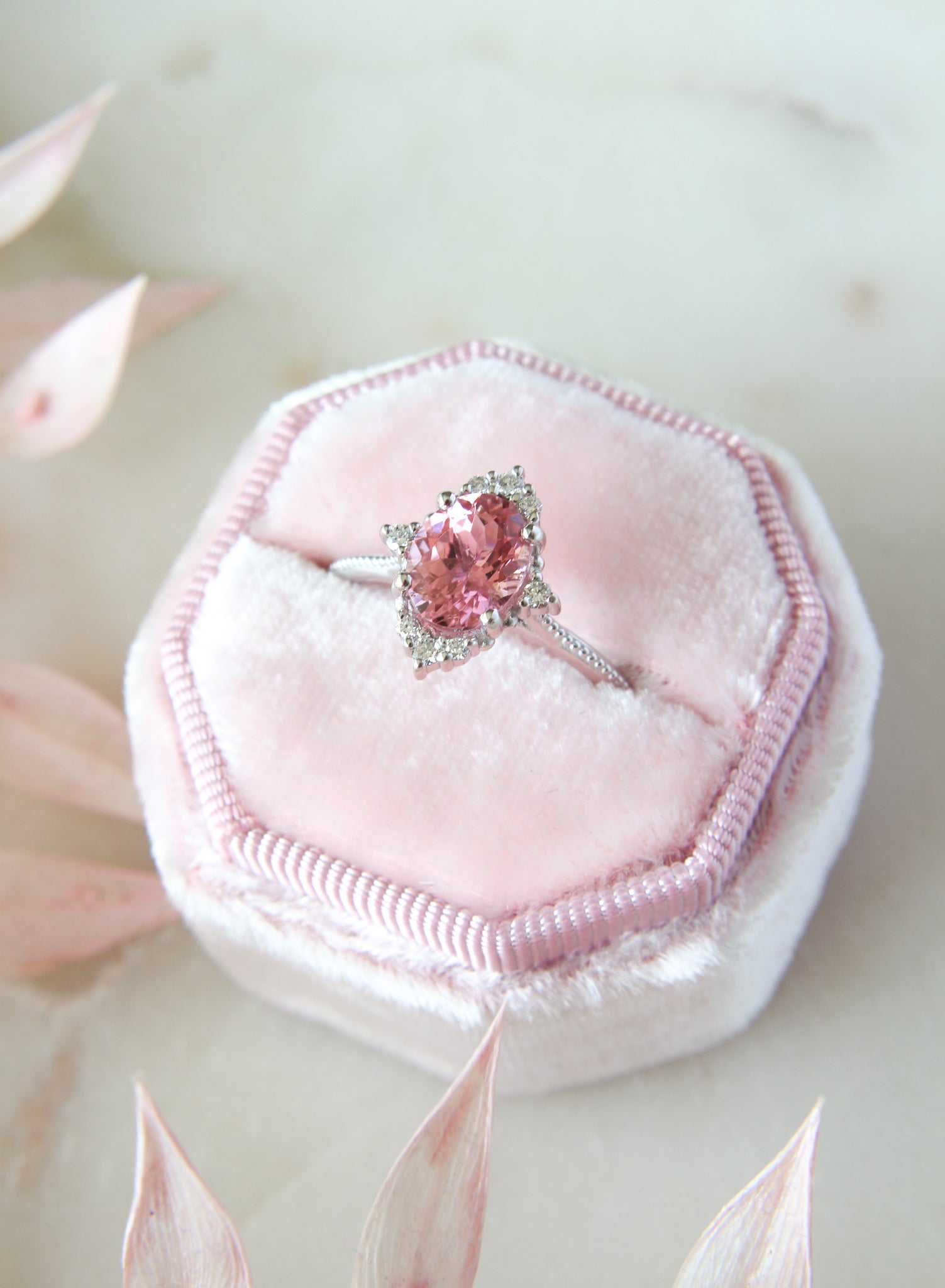 Sormuksen suunnitteluprosessi alkoi omien toiveideni pohdinnasta. Ihannesormus minulle sisältäisi jotain vaaleanpunaista ja kimaltavaa näyttävyyttä, johon yhdistyisi hienovarainen viittaus vintage-tyyliin.