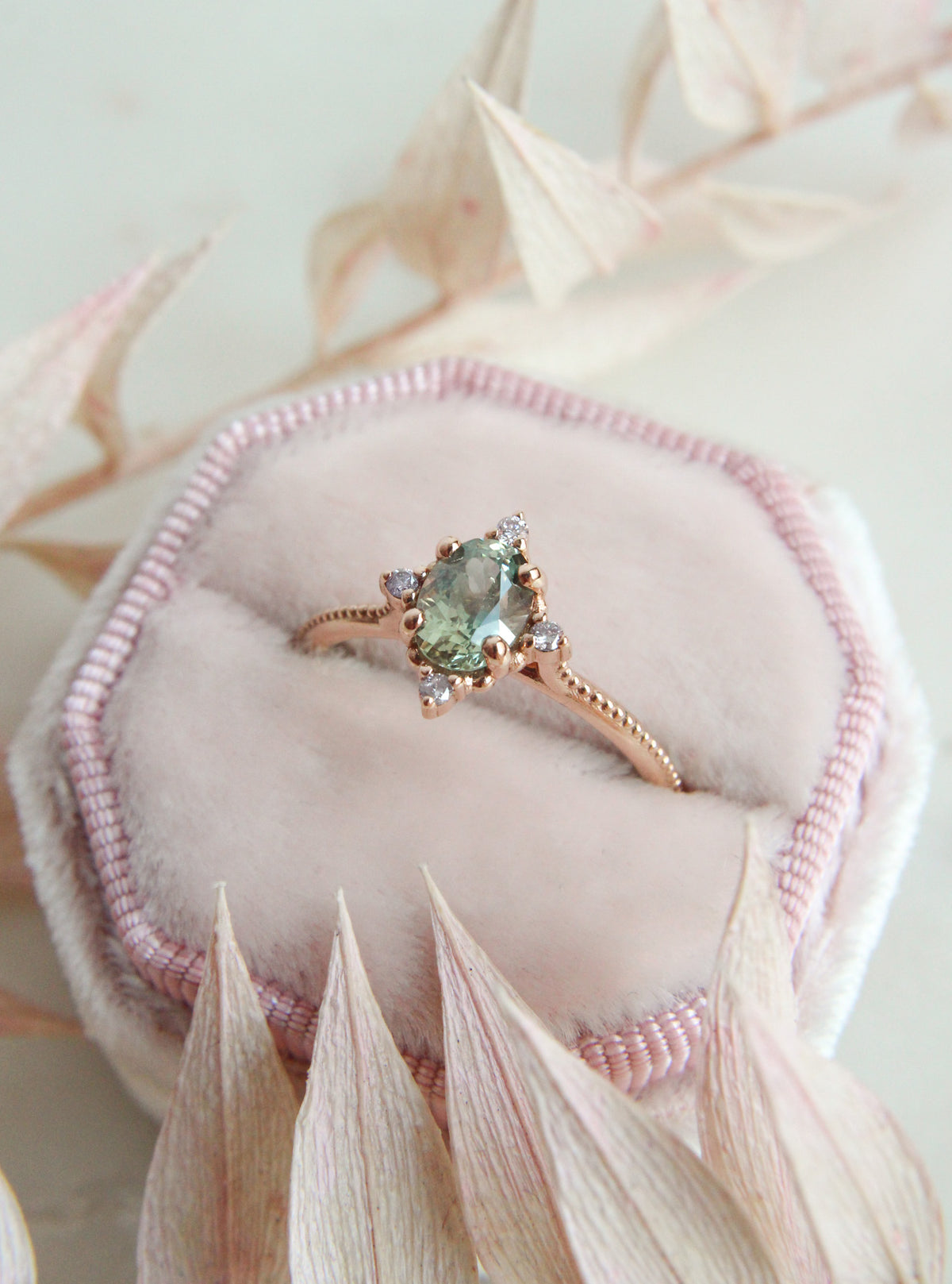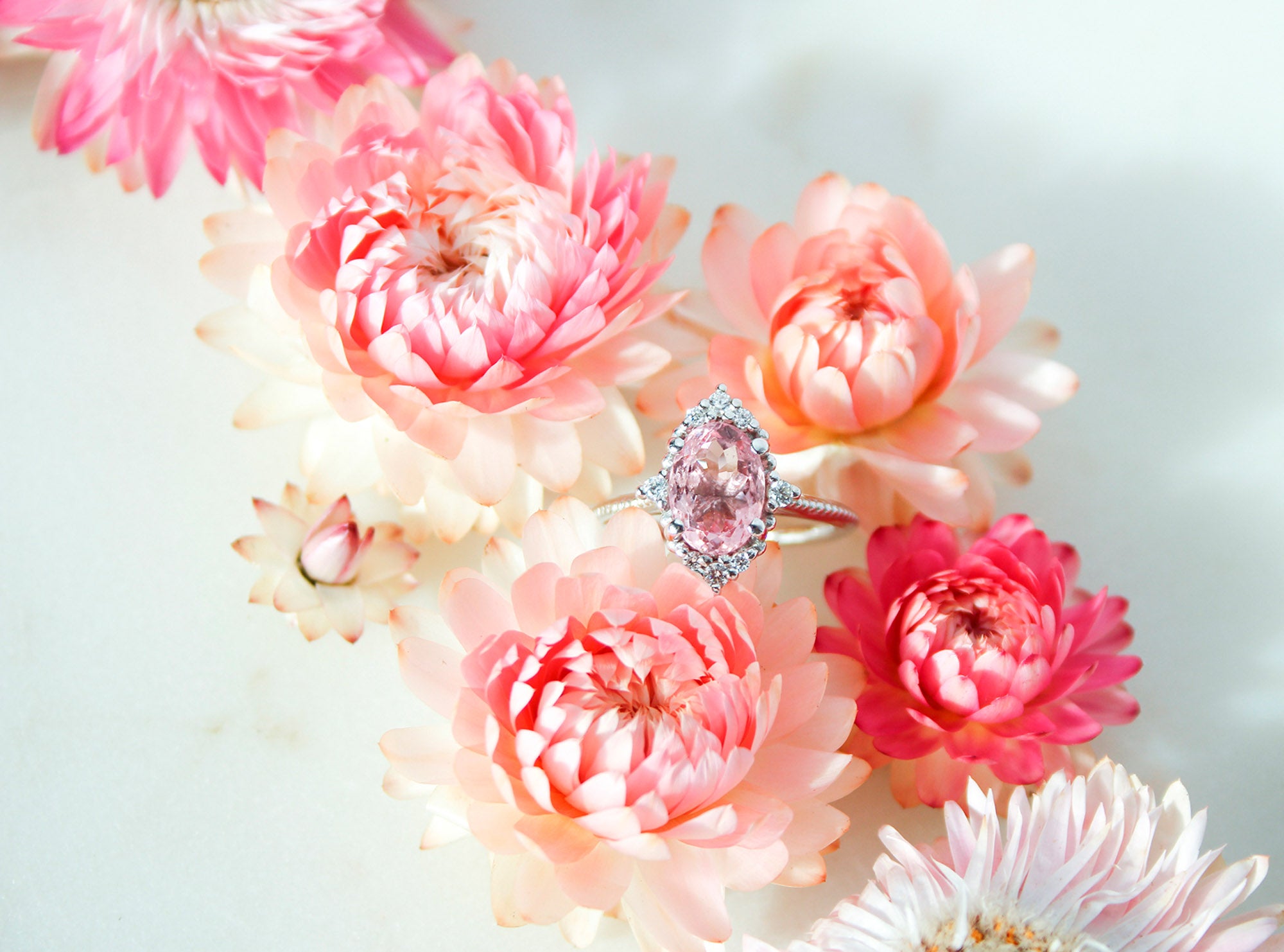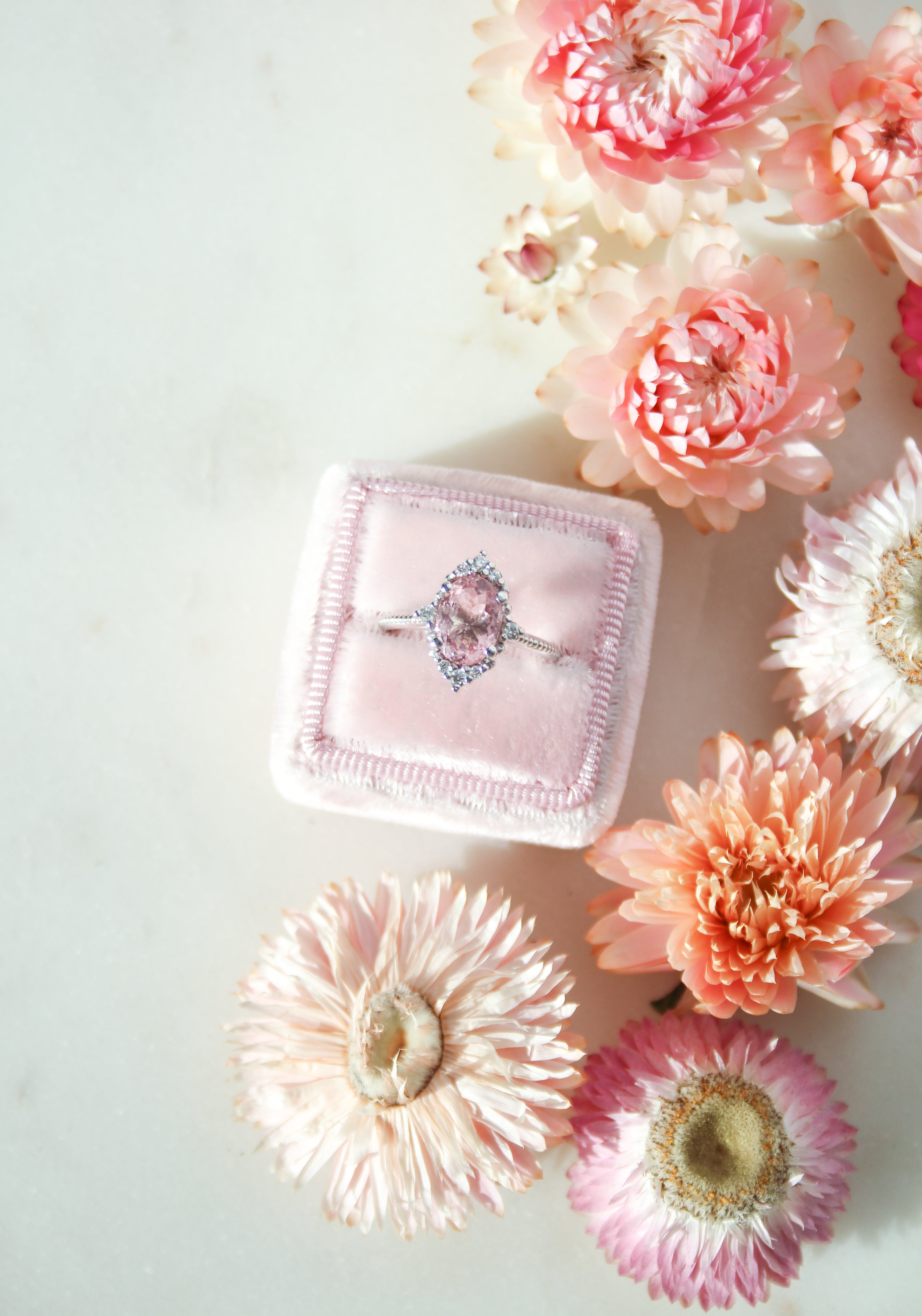 Sormuksen suunnitteluprosessi alkoi omien toiveideni pohdinnasta. Ihannesormus minulle sisältäisi jotain vaaleanpunaista ja kimaltavaa näyttävyyttä, johon yhdistyisi hienovarainen viittaus vintage-tyyliin.