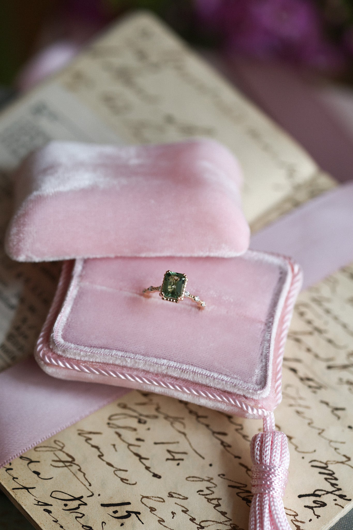 Samettinen sormusrasia on kaunis säilytyspaikka tärkeimmille sormuksillesi.